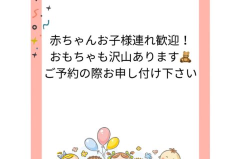 赤ちゃんのお布団やおもちゃ沢山ございます 自宅サロン(リビング)で施術をしておりますので 遊びに来る感覚で是非お連れください👶