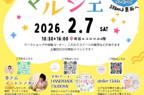 🌈 両国エコロマルシェ 開催のお知らせ 🌈 📅 2026年2月7日(土) ⏰ 10:30〜16:00 📍 両国エコロビル 4階 ワークショップ...