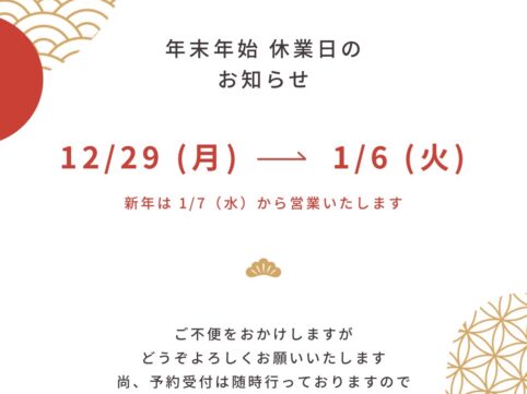 年始は1月7日より営業いたします🈺 予約などご連絡はいつでも受付しておりますのでお気軽にご連絡下さい🌟