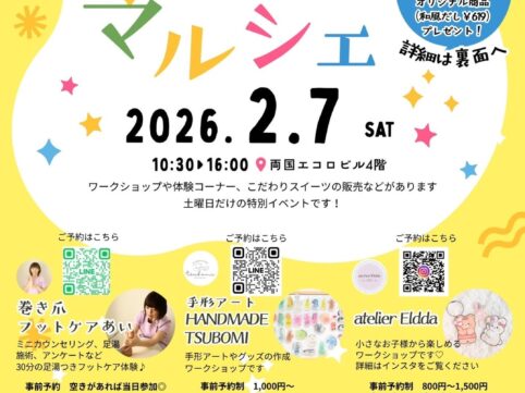 🌈 両国エコロマルシェ 開催のお知らせ 🌈 📅 2026年2月7日(土) ⏰ 10:30〜16:00 📍 両国エコロビル 4階 ワークショップ...